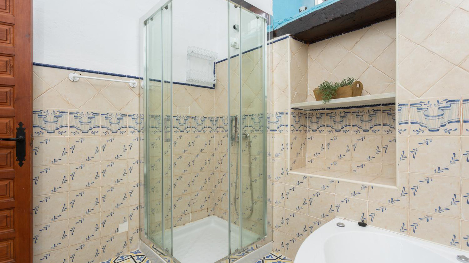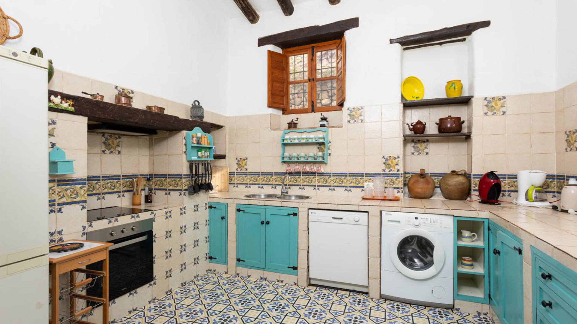 La cocina, decorada con azulejos andaluces tradicionales, está totalmente equipada con todas las comodidades modernas: frigorífico-congelador, horno, placa, microondas, lavavajillas, lavadora y todo tipo de utensilios, para que no le falte nada a la hora de preparar comidas caseras.