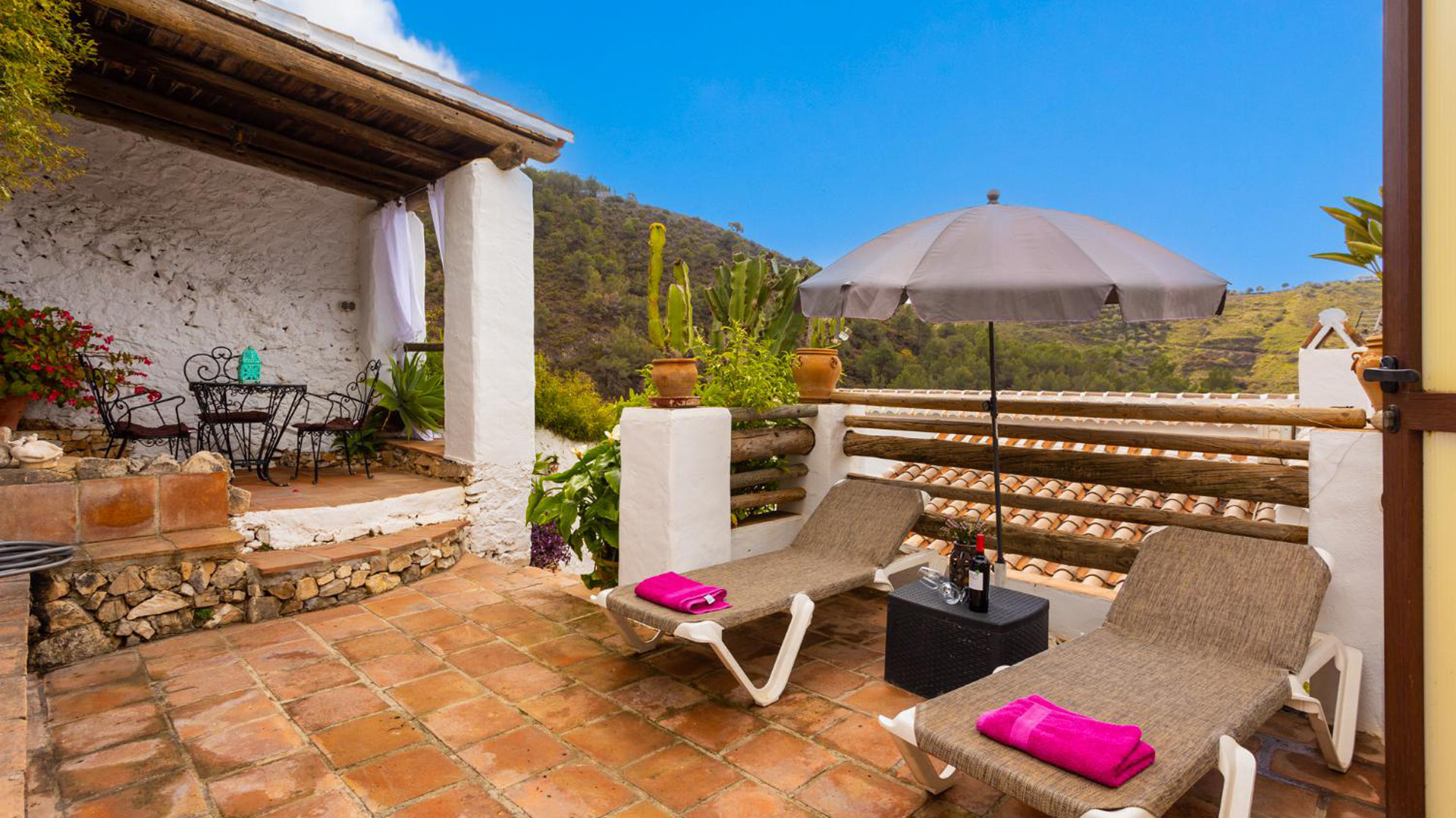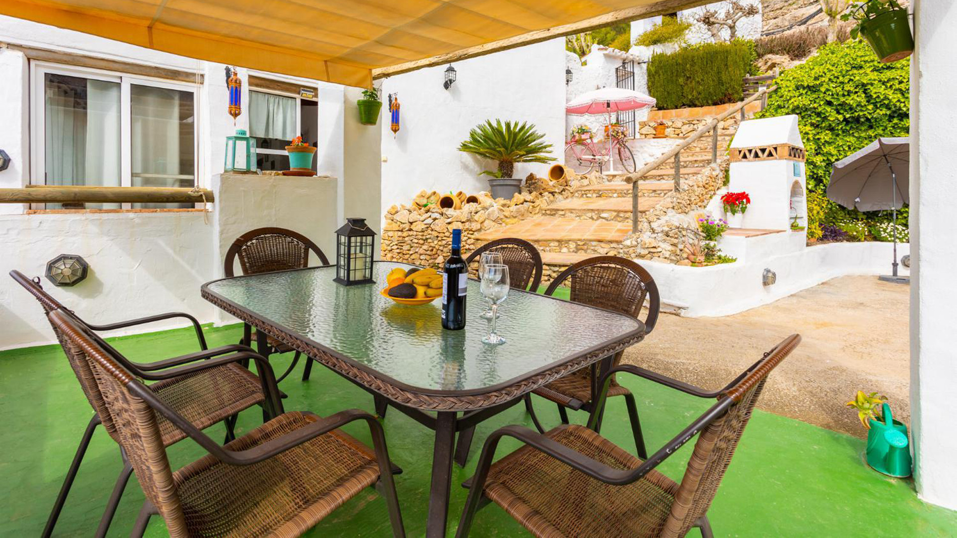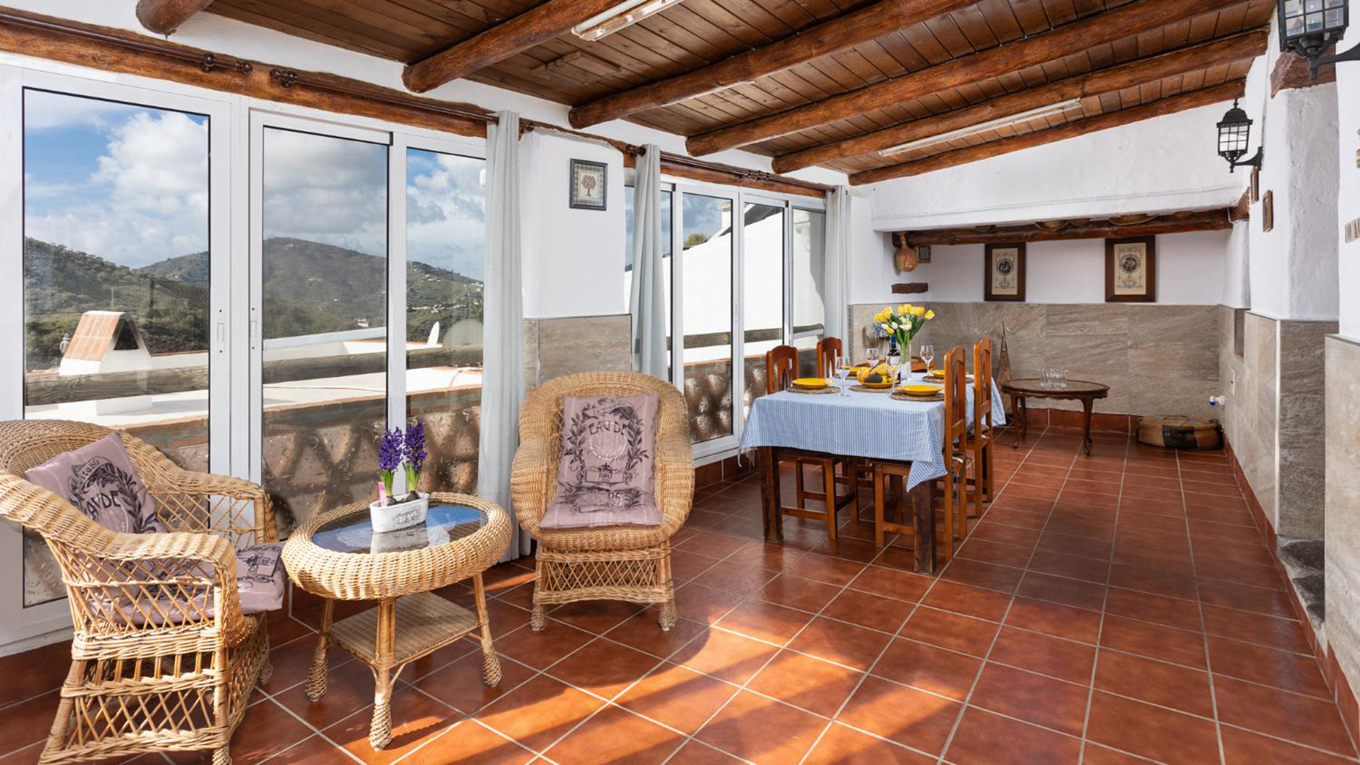 Desde su ubicación única en las montañas, a 5,3 km del pueblo blanco de Frigiliana, esta casita ofrece unas vistas increíbles. Desde Frigiliana, una carretera de montaña conduce al pueblo de Torrox, en el norte. Después de unos 3 km, un camino sinuoso hormigonado, con algunos tramos empinados, desciende hasta la propiedad, lo cual le confiere un carácter privado y exclusivo (se recomienda un automóvil con un motor más fuerte de lo normal). La casa tiene una hermosa terraza decorada con piedras blancas y que rodea una atractiva piscina de 6m x 4m y 1,50 m - 1,80 m de profundidad. En la parte delantera, hay un porche terraza con espléndidas vistas al mar. Una barbacoa integrada y tumbonas están disponibles.