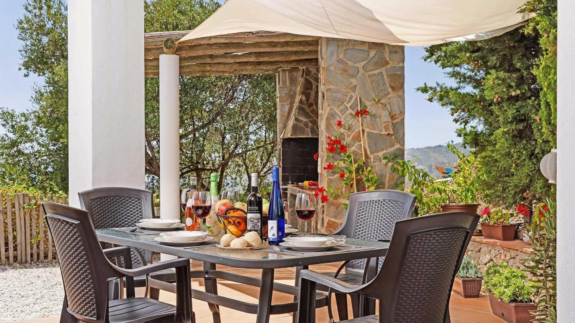 Situado en el terreno propio de la finca, este cortijo ofrece agradables noches de verano para cenar al aire libre junto a la piscina privada con vistas a Frigiliana. Una gran terraza sombreada con muebles de jardín frente a la casa dispone de una zona cómoda para comer al aire libre. Junto a la casa hay una pequeña cocina de verano con una barbacoa incorporada y una segunda zona de comedor con muebles de teca elegantes.