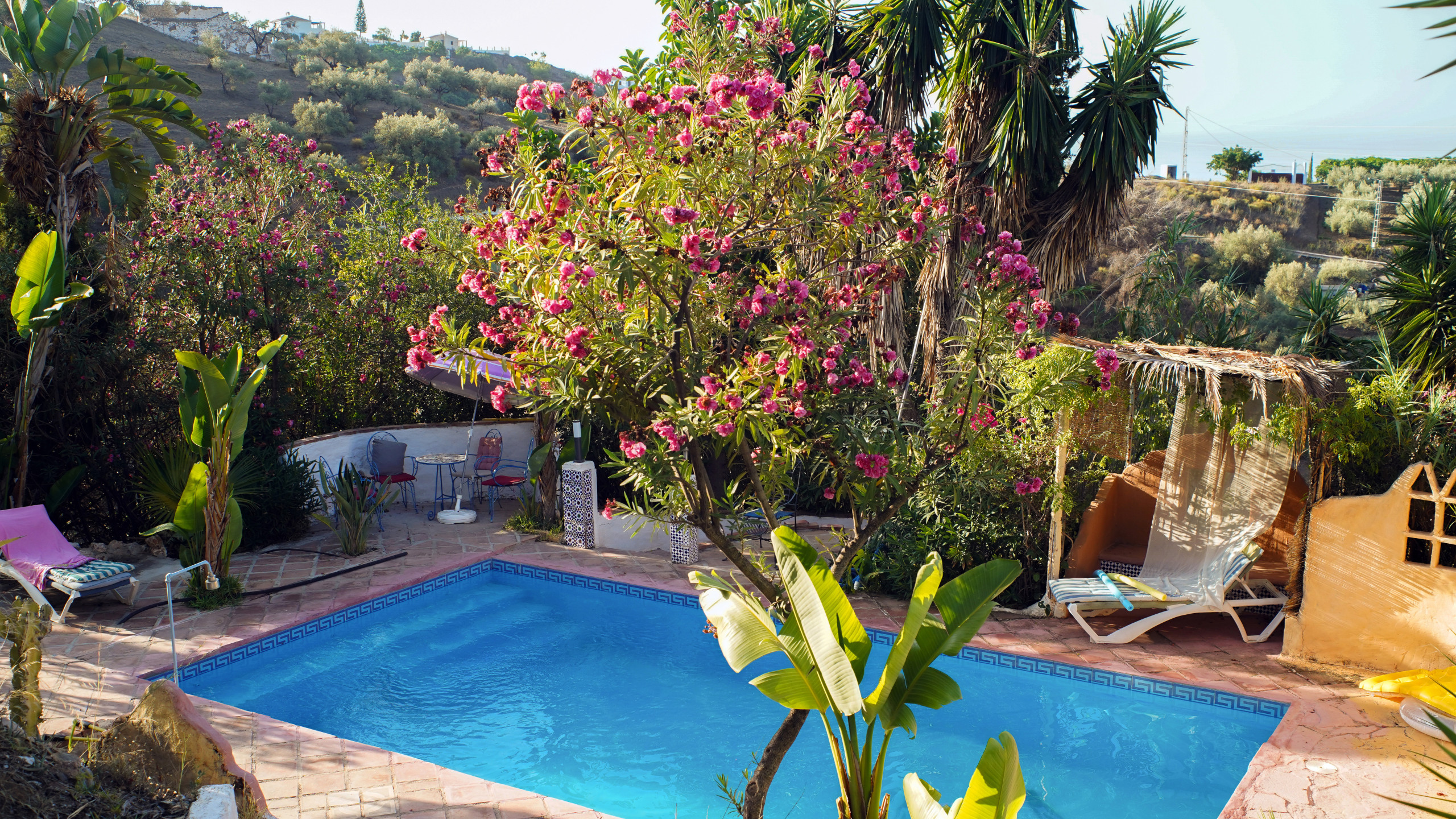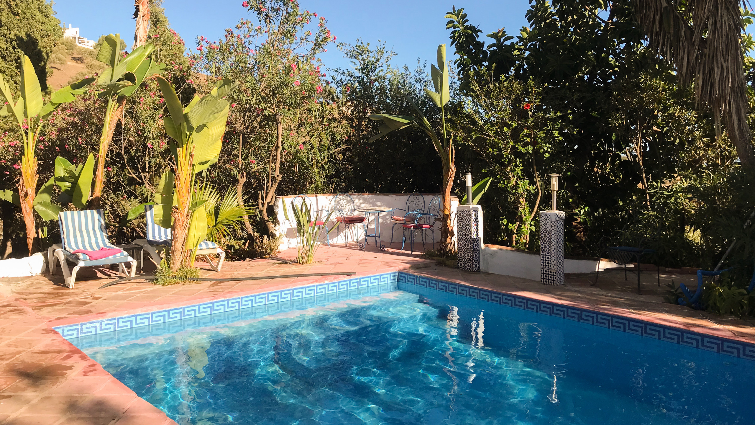 La piscina es grande (4 m x 7,5 m de largo y 1 m x 1,5 m de profundidad) con una zona de césped y una bonita terraza soleada ─ dispone de tumbonas para tomar el sol y relajarse. Además, el alojamiento está muy bien situado para explorar el impresionante legado árabe de las ciudades andaluzas de Granada, Sevilla y Córdoba, entre otras. Nerja y sus playas están a 10 minutos en coche.