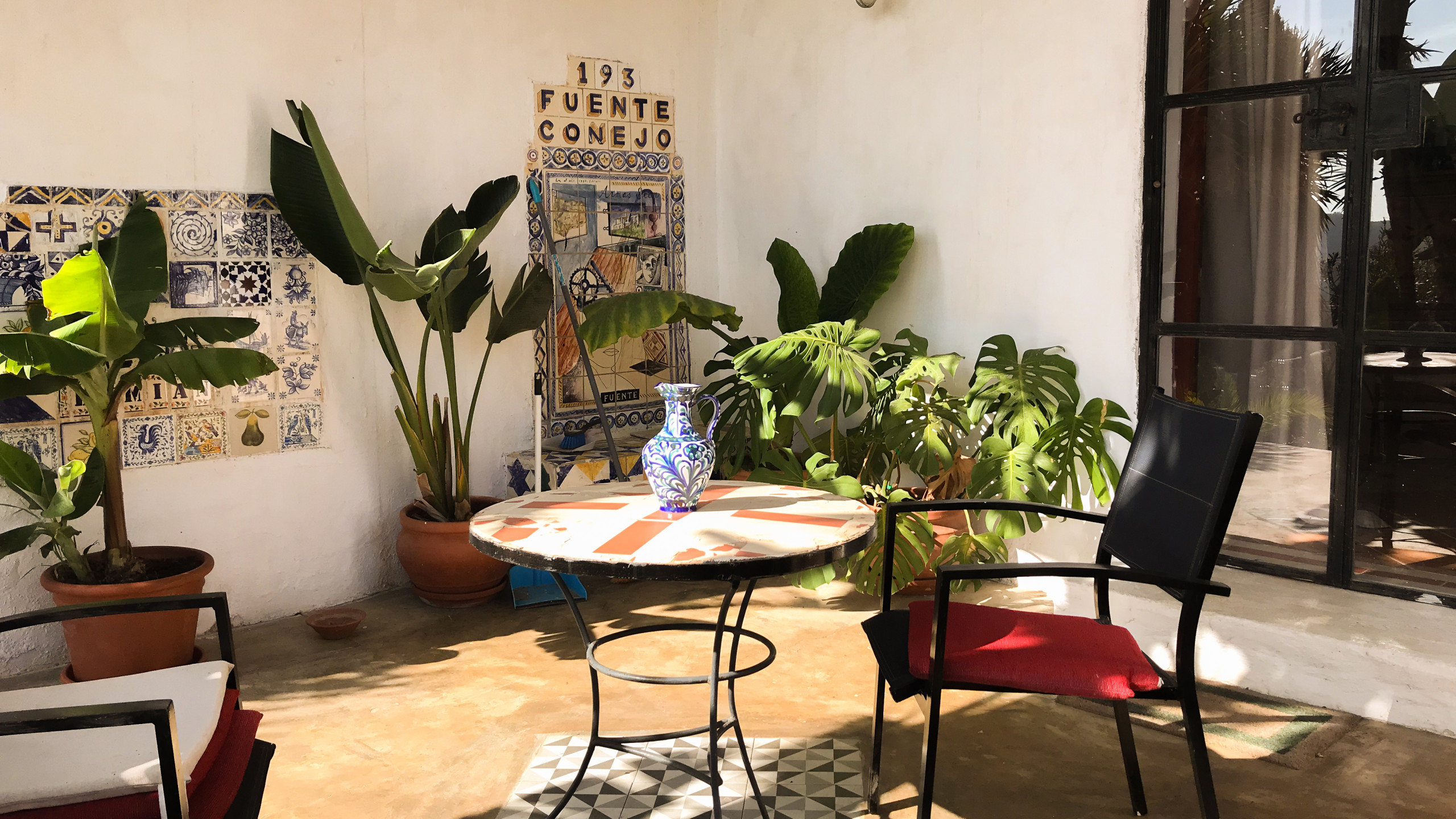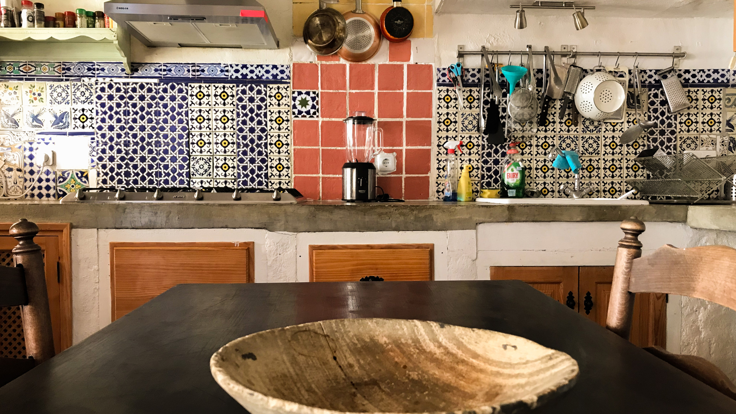 En la entrada de la casa hay un pequeño salón a modo de mirador con vistas al campo y al mar en el horizonte. Desde allí se accede a una amplia cocina, exquisitamente decorada en estilo campestre andaluz y equipada con frigorífico/congelador, placa de gas, horno, lavadora y todo tipo de utensilios.