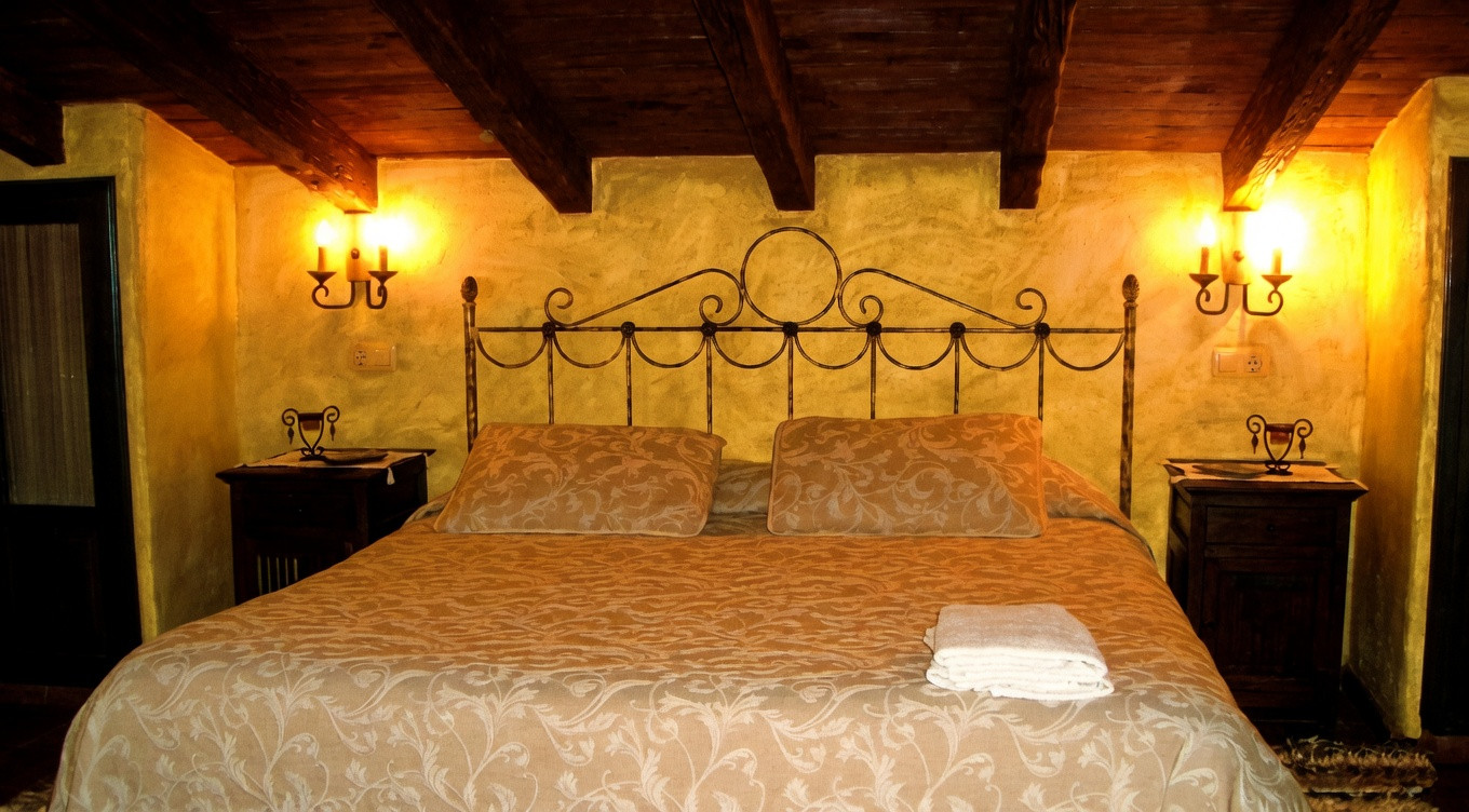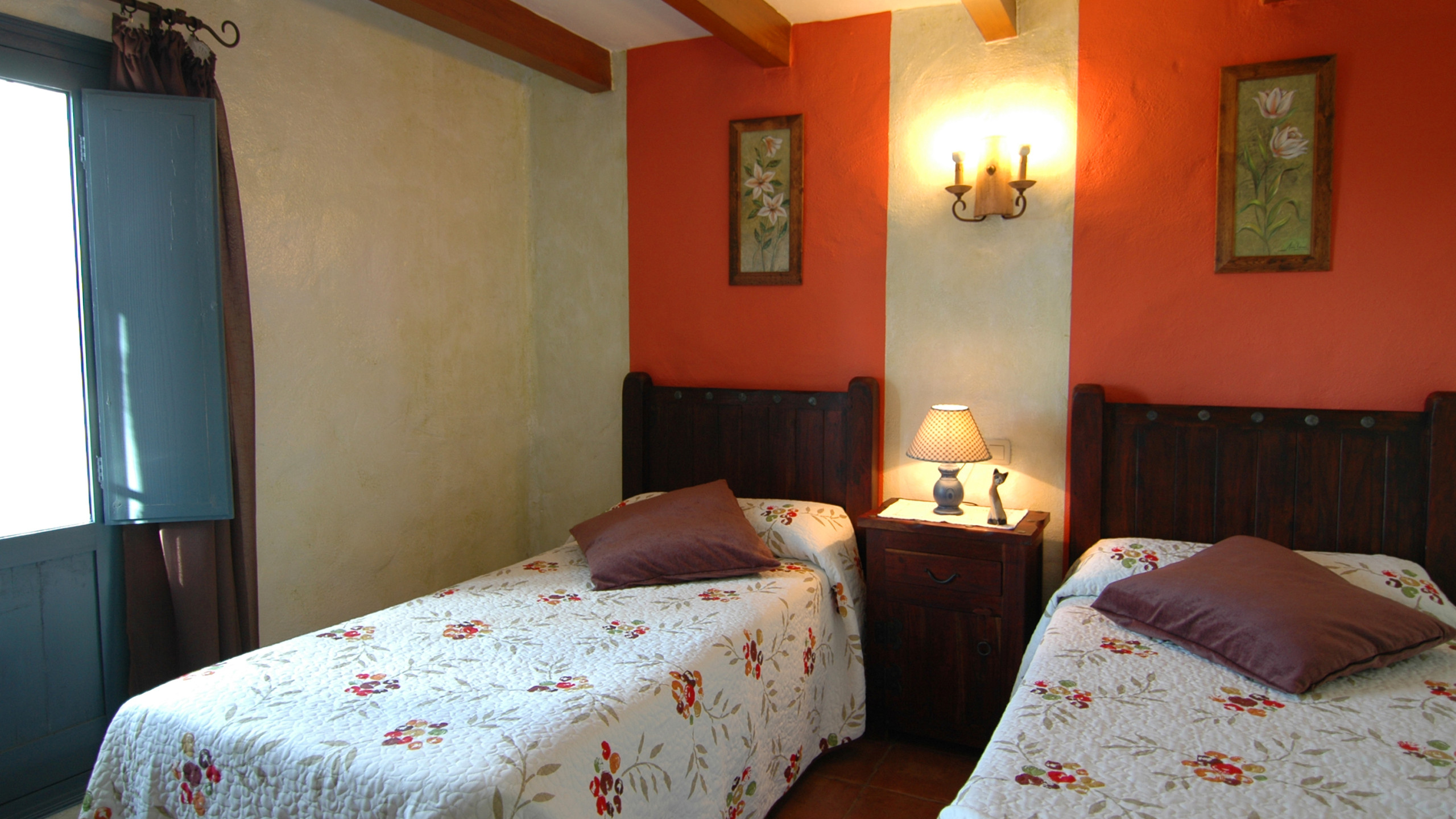 El interior está decorado con gusto en un estilo rústico tradicional, con techos con vigas de madera y muebles cuidadosamente seleccionados que crean un ambiente acogedor y elegante.