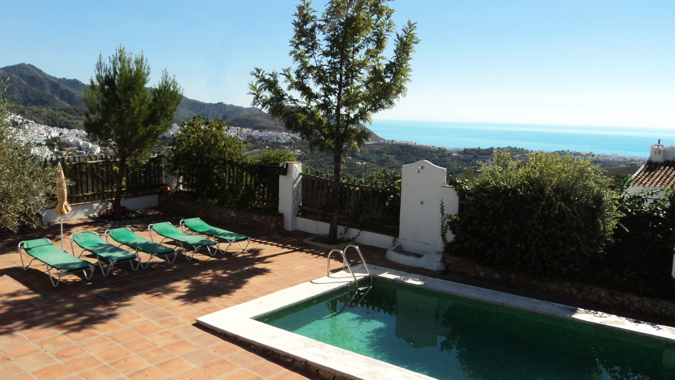 A este chalet adosado se llega a través de un sinuoso carril de hormigón, no obstante, a menos de 10 minutos en coche de Frigiliana (3,7 km), y a sólo 20 minutos de la costa de Nerja y sus playas de arena (11 km). A su llegada, sus ojos directamente captarán las magníficas vistas sobre el paisaje circundante hasta el Mediterráneo. El jardín está compuesto por una gran cantidad de flores, arbustos y árboles, y dispone de varias zonas con asientos. Hay una piscina privada (4m x 3m y 1,70 m de profundidad) y una terraza adyacente con 4 tumbonas, mientras que la zona de barbacoa es el lugar adecuado para entretenerse durante la noche tal vez disfrutando de una sangría bajo el cielo estrellado. Un cuarto de ducha está situado convenientemente bajo la terraza de la piscina.