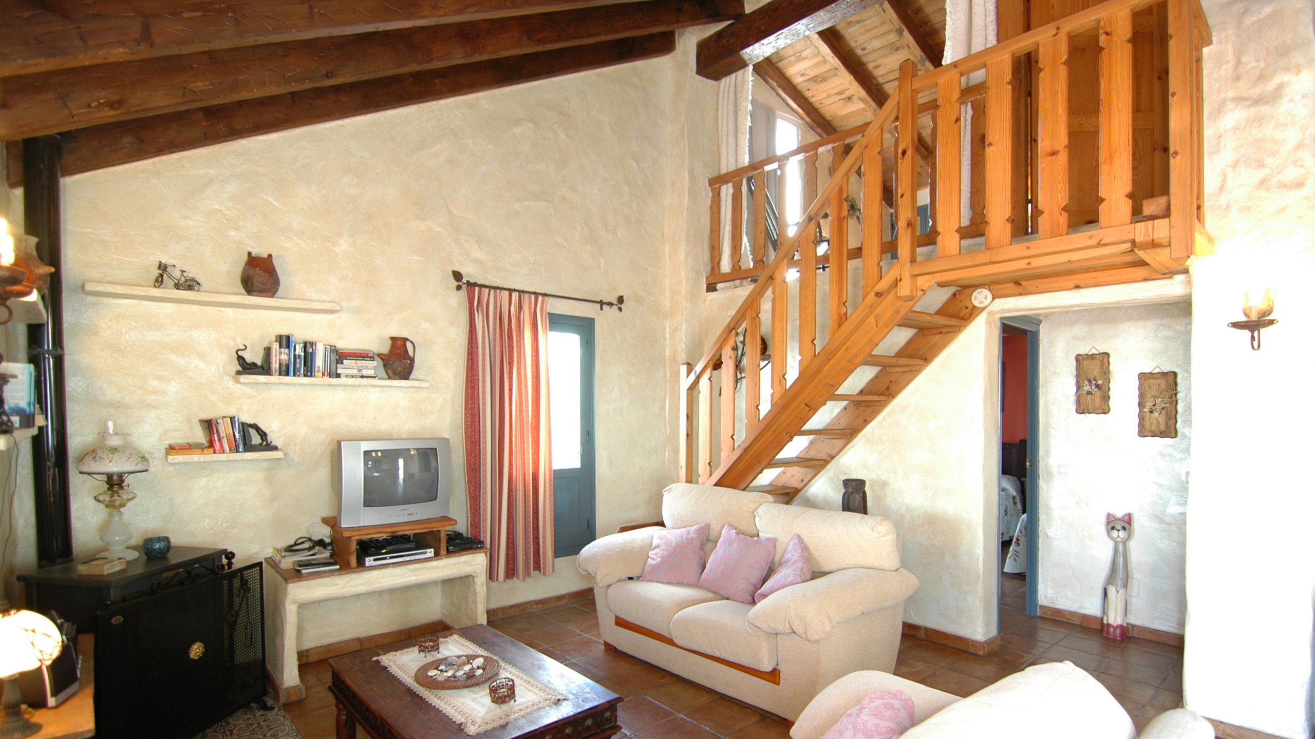 La vivienda dispone de dos acogedores dormitorios dobles con camas individuales y armarios empotrados, así como un cuarto de ducha decorado en estilo tradicional con lavabo y WC. Una escalera de madera abierta conduce a un dormitorio tipo galería con cama de matrimonio y baño en suite, equipado con lavabo y WC.