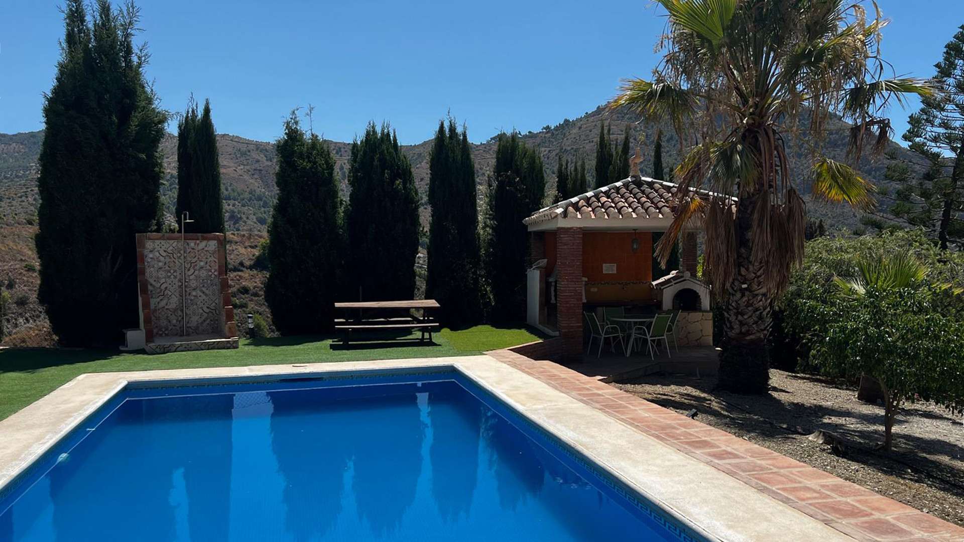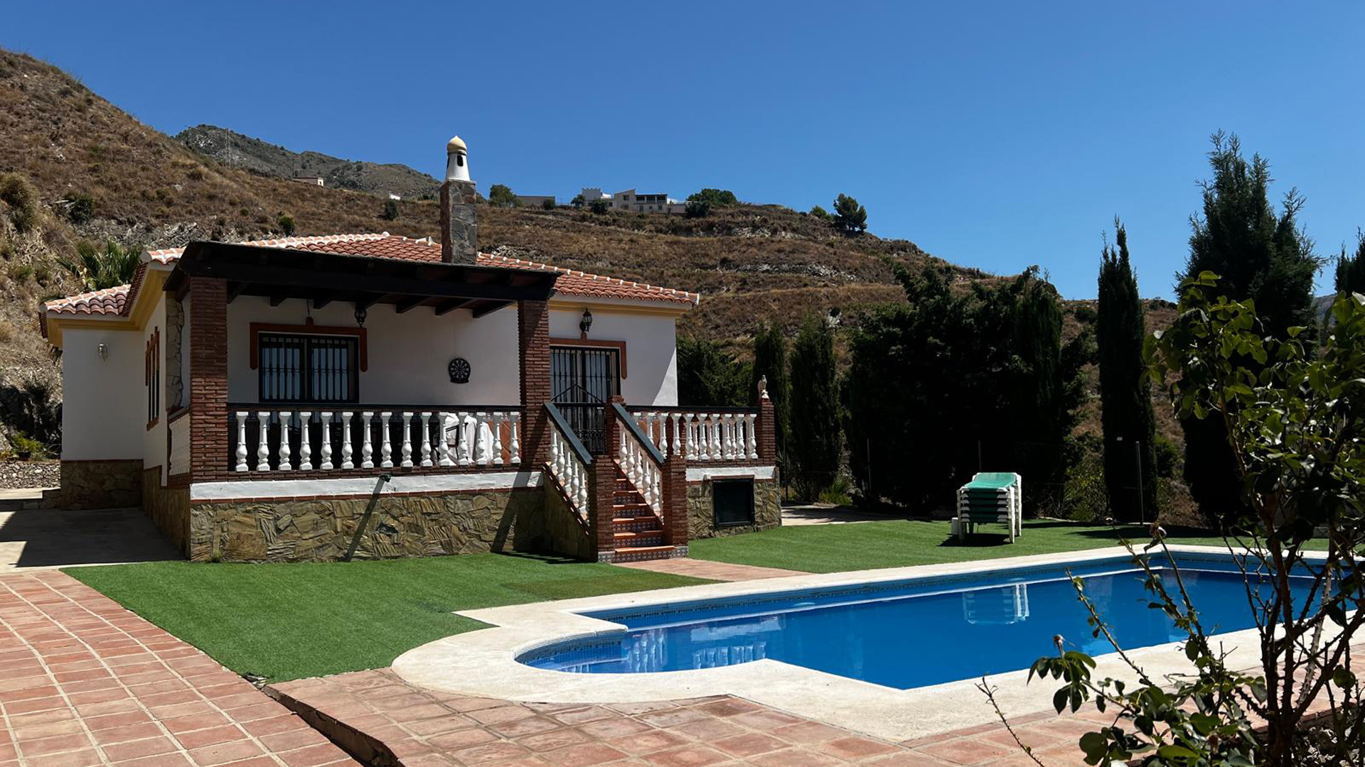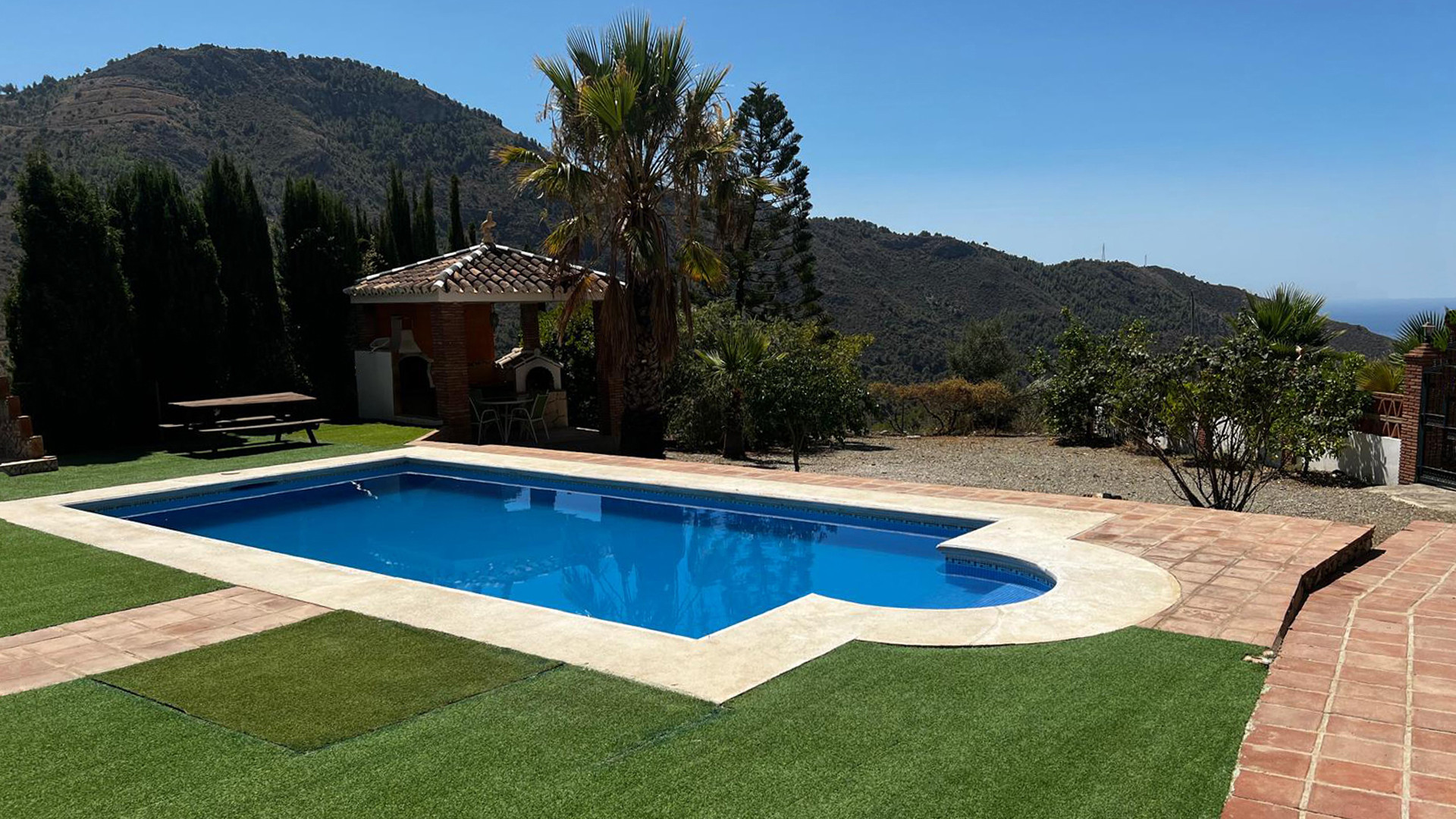 A pocos kilómetros al este de Maro, una carretera rural baja hasta el hermoso valle del Río de la Miel. Tras recorrer 2.5 km, los últimos 500 metros se hacen por pista de tierra. Este tramo cuenta con algunas curvas cerradas sin quitamiedos. Aunque no es empinado, puede que no sea apto para los menos aventureros. La villa posee una atractiva zona exterior con piscina privada (8mx4m), y variedad de árboles, plantas y flores. Senderistas y excursionistas cuentan con bastantes posibilidades. Tras descubrir el valle, pruebe con un paseo alrededor de los acantilados de Maro, o siga la ruta que conduce a la antigua azucarera, que forma parte del complejo arqueológico industrial. Encontrará muchas más rutas de senderismo y bien documentadas en la app de Wikiloc. Si lo que prefiere es darse un chapuzón en el mar, puede ir a la búsqueda de calas escondidas justo a las afueras del valle. En su interior, la villa ofrece un alojamiento espacioso, todo en una única planta y con decoración al estilo español clásico.