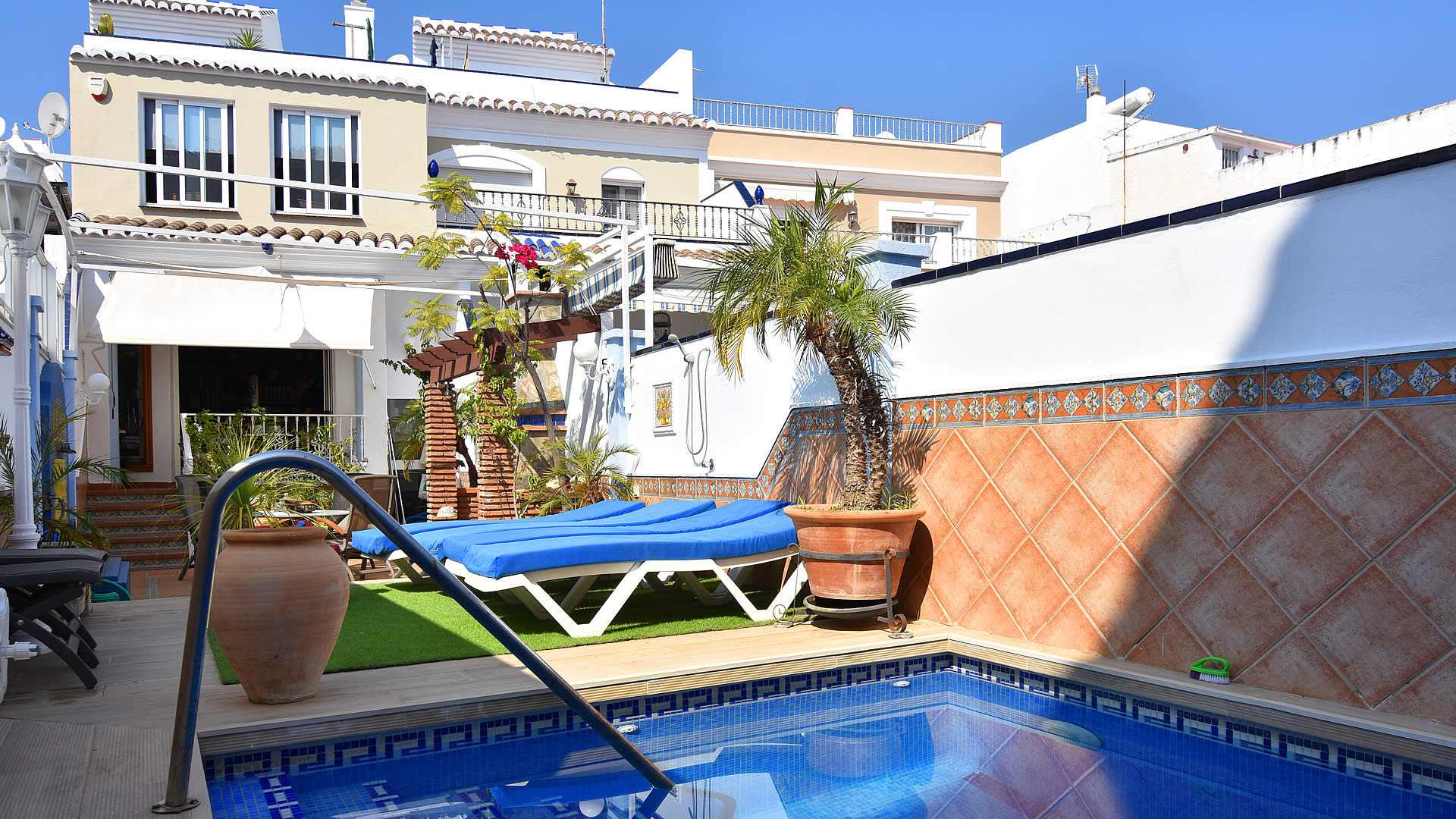 No es necesario alquilar un coche, ya que está a sólo unos minutos caminando de la playa Calahonda y de los numerosos bares de tapas, restaurantes y tiendas del centro de Nerja. Debido a la gran demanda de estacionamiento en la calle en esta céntrica ubicación, sugerimos llegar en taxi. Aquellos que deseen visitar las hermosas ciudades andaluzas pueden coger el transporte público en la cercana estación de autobuses de la Avenida de Pescia (a 200m) o hacer una visita guiada. Detrás de la fachada de una casa tradicional, encontrará un alojamiento espacioso: desde la calle Méndez Núñez, los escalones conducen a la puerta principal que se abre al salón / comedor de estilo clásico. En la parte trasera encontrará una relajante terraza con una barbacoa de construcción, una mesa y sillas para disfrutar de una cena al aire libre, con vistas a la piscina privada (3m x 5m; 1,5m de profundidad). En la planta superior, la amplia azotea ofrece otra opción para que los adictos al sol se relajen y tomen el sol.